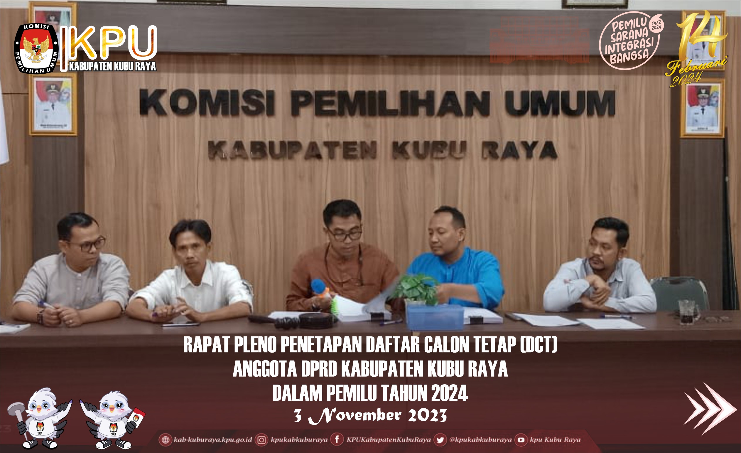 #temanpemilih, KPU Kabupaten Kubu Raya melaksanakan Rapat Pleno Penetapan Daftar Calon Tetap (DCT) Anggota DPRD Kabupaten Kubu Raya. Jumat, 3 November 2023.