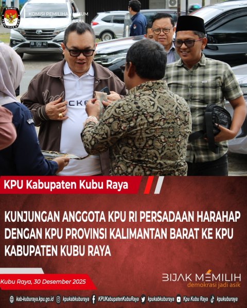 KUBU RAYA - Ketua Divisi Sumber Daya Manusia, Organisasi, Pendidikan, Pelatihan, Penelitian dan Pengembangan KPU RI Persadaan Harahap bersama Jajaran dan KPU Provinsi Kalimantan Barat Kunjungi Kantor KPU Kabupaten Kubu Raya pada Selasa (30/12/2025).