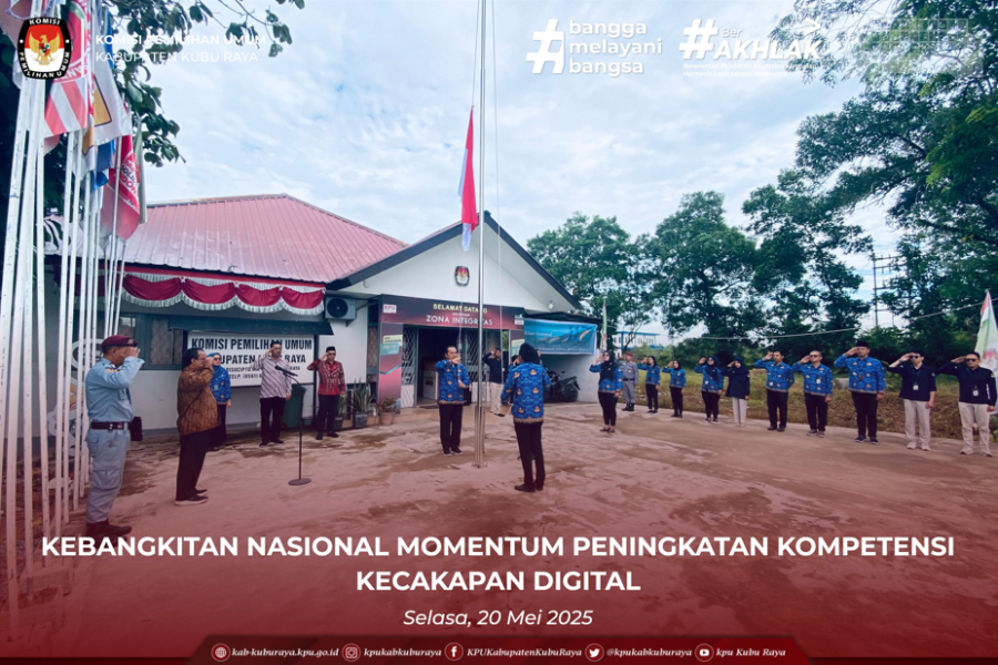 Selasa (20/05/2025) Komisi Pemilihan Umum Republik Indonesia (KPU RI) beserta seluruh jajaran hingga tingkat Komisi Pemilihan Umum (KPU) Kabupaten/Kota melaksanakan upacara Peringatan Hari Kebangkitan Nasional ke - 117 secara serentak tanpa terkecuali KPU Kabupaten Kubu Raya. Dalam pelaksanaan upacara Hari Kebangkitan Nasional di KPU Kabupaten Kubu Raya dilaksanakan pukul 08.00 WIB, sebagai Inspektur Upacara dipimpin langsung oleh Ketua dan diikuti oleh Anggota beserta jajaran sekretariat KPU Kabupaten Kubu Raya. Pada saat pelaksanaan upacara hari Kebangkitan Nasional beliau membacakan Naskah Pidato Menteri Komunikasi dan Digital yang bertema "Menuju Kebangkitan Nasional yang Bersahaja, Berpihak, dan Berkelanjutan". Poin penting dalam pidato tersebut ialah pengembangan manusia, mempercepat hadirnya pusat-pusat pelatihan vokasi dan penguatan talenta digital untuk menjawab tantangan besar di era transformasi digital. Melalui kolaborasi dengan dunia industri, Pemerintah Indonesia mendorong terbukanya lebih banyak program pelatihan yang relevan dengan kebutuhan pasar, termasuk dalam penguasaan kecerdasan artifisial, pengelolaan data, dan keterampilan digital praktis. Dari pidato yang disampaikan, secara terpisah Kasiono mengungkapkan "Dengan perkembangan transformasi digital diharapkan seluruh Sumber Daya Manusia khususnya di KPU Kubu Raya harus segera menyamakan frekuensi dalam menghadapi perkembangan teknologi dengan meningkatkan kompetensi digital agar memiliki kecakapan digital dalam memberikan pelayanan terbaik terhadap hak pilih warga negara secara profesional dan akuntabel." Terangnya setelah Upacara selesai. Setelah upacara berakhir, KPU Kabupaten Kubu Raya melanjutkan Ziarah ke Makam Pahlawan Demokrasi Bapak Viryan Aziz selaku Anggota KPU Republik Indonesia Periode 2017 - 2022, sebagai bentuk penghargaan dan apresiasi yang tinggi atas sumbangsih dalam meningkatkan kualitas demokrasi di Indonesia.(erpe)