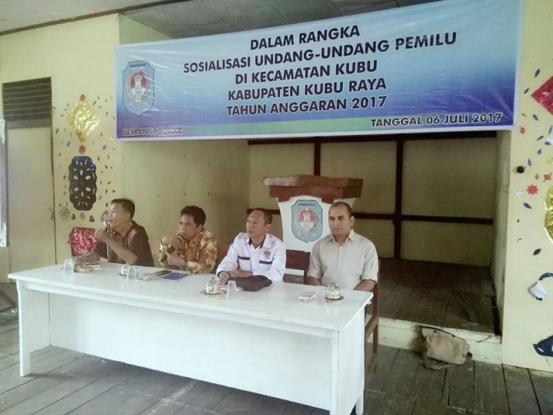 kpu-kuburayakab.go.id - Komisi Pemilihan Umum (KPU) Kab. Kubu Raya (KKR), Kamis (6/7/2017) melaksanakan kegiatan Sosialisasi Undang-Undang (UU) Pemilu di Kecamatan Kubu. Kegiatan ini merupakan bagian dari agenda KPU KKR bersama dengan Kantor Kesbangpol Kab. Kubu Raya guna memberikan edukasi seputar demokrasi dan UU Pemilu bagi masyarakat di KKR menyongsong pesta demokrasi pilkada serentak Pemilihan Bupati dan Wakil Bupati Kubu Raya serta pemilihan Gubernur dan Wakil Gubernur Kalimantan Barat tahun 2018.