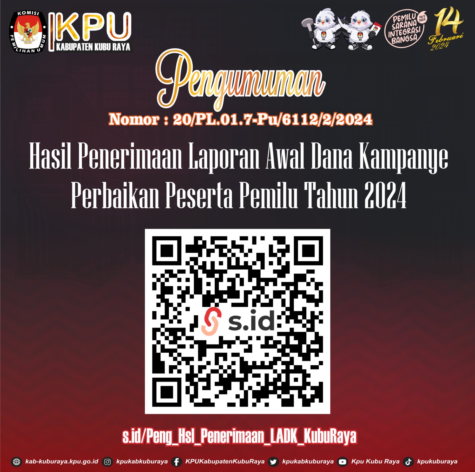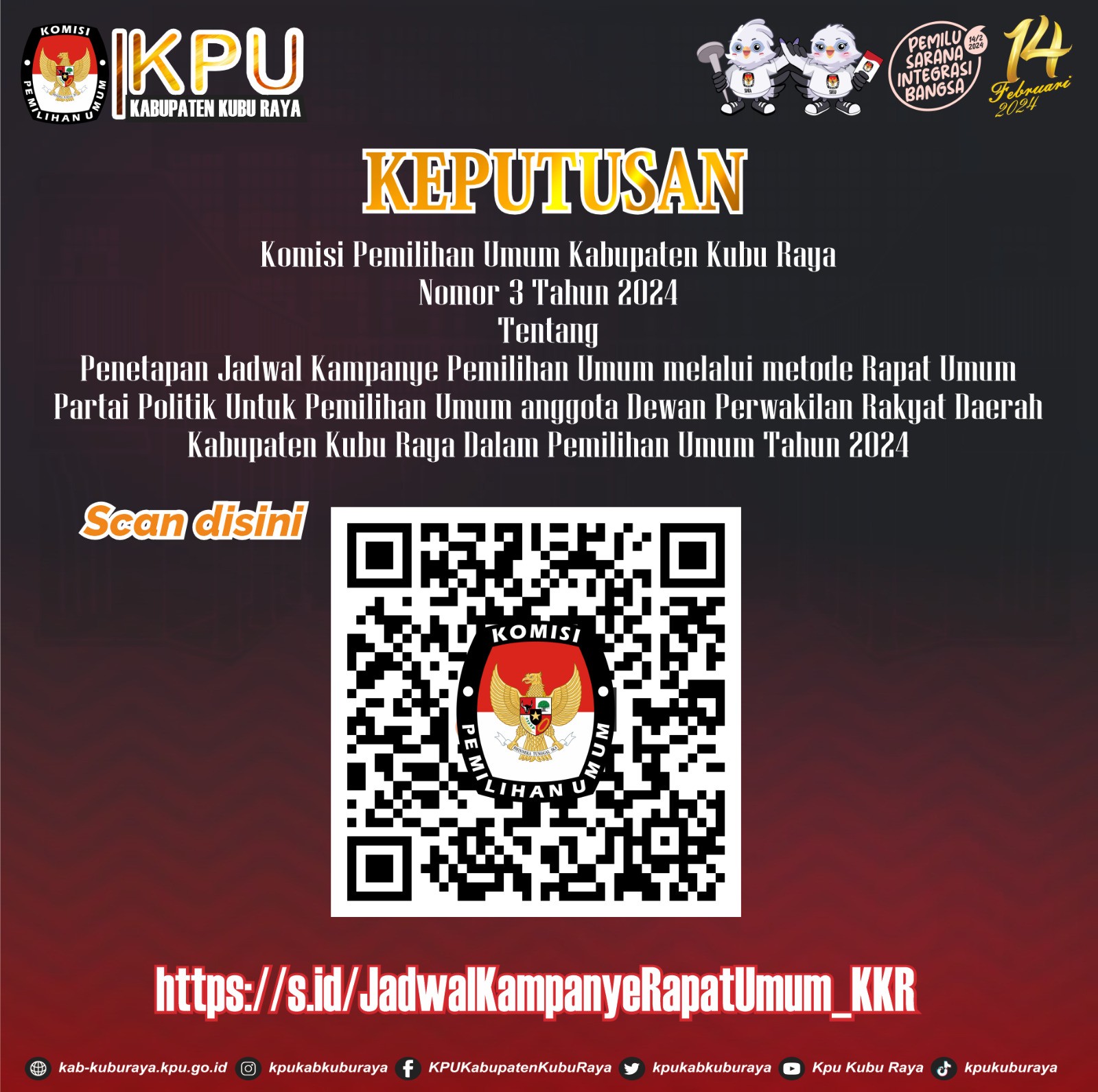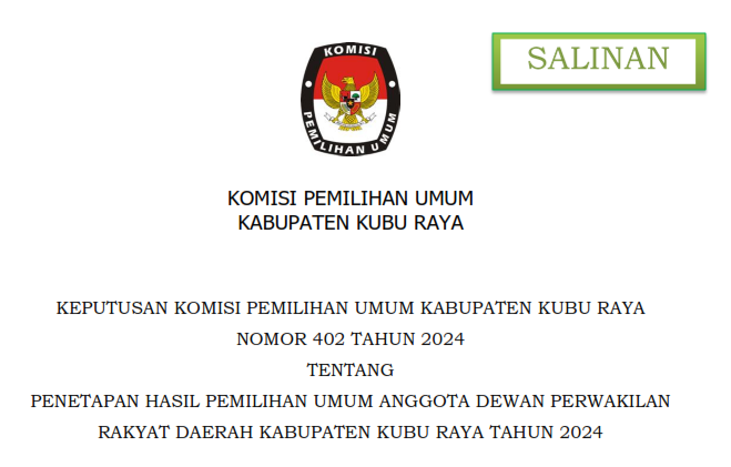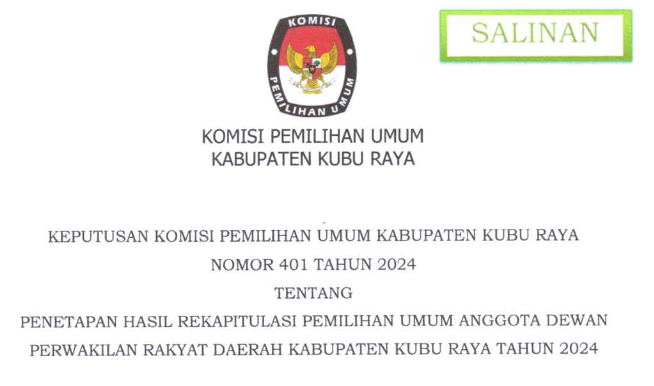 #Teman Pemilih, Berikut disampaikan Rekapitulasi Hasil Penghitungan Perolehan Suara TIngkat Kabupaten Kubu Raya Pemilu Tahun 2024.