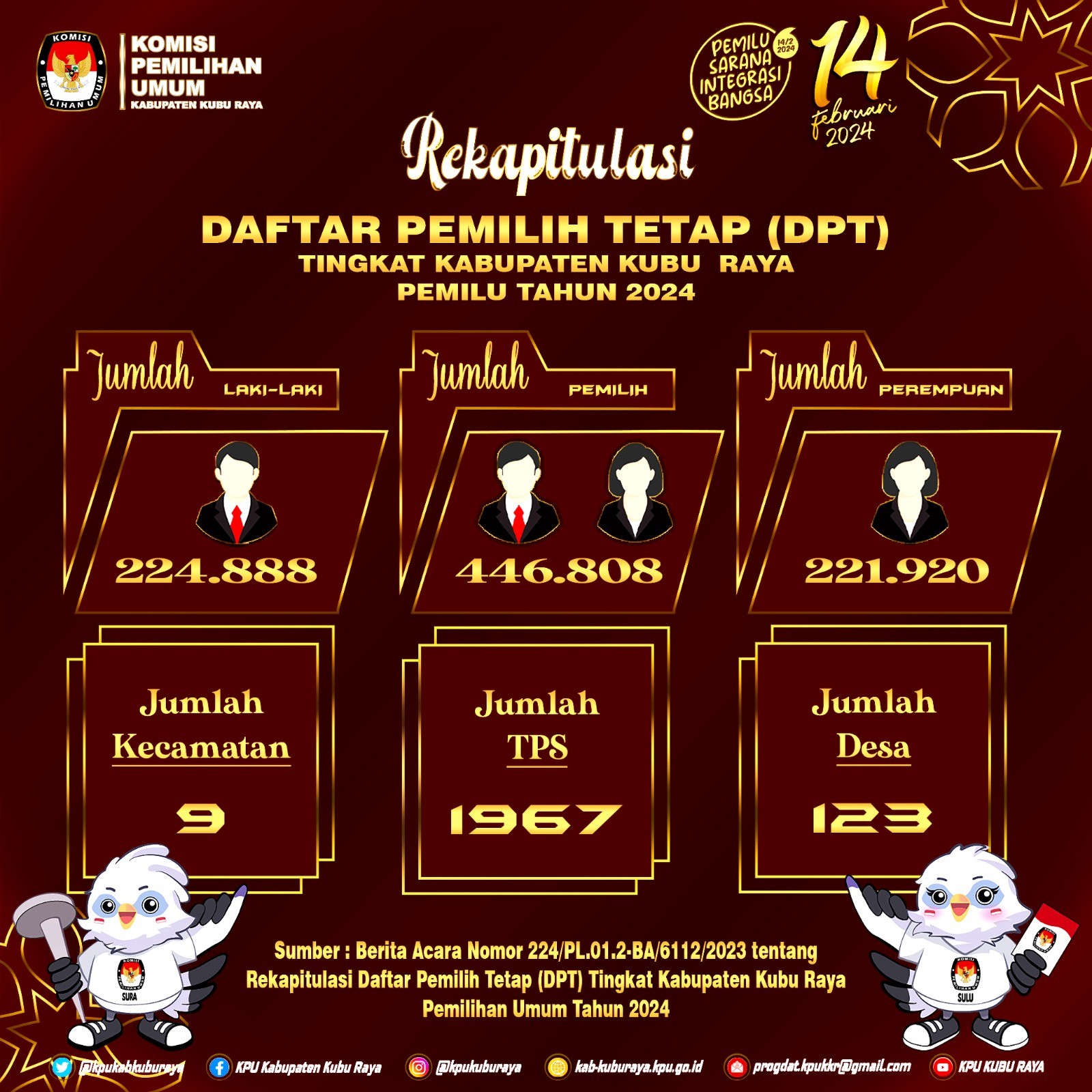 #TemanPemilih, Berikut disampaikan Berita Acara Rekapitulasi Hasil Perbaikan Daftar Pemilih Sementara (DPS) Tingkat Kabupaten Kubu Raya pada Pemilhan Umum Tahun 2024 dan Surat Keputusan Tentang Penetapan Rekapitulasi Hasil Perbaikan Daftar Pemilih Sementara (DPS) Kabupaten Kubu Raya dalam Penyelenggaraan Pemilihan Umum Tahun 2024.