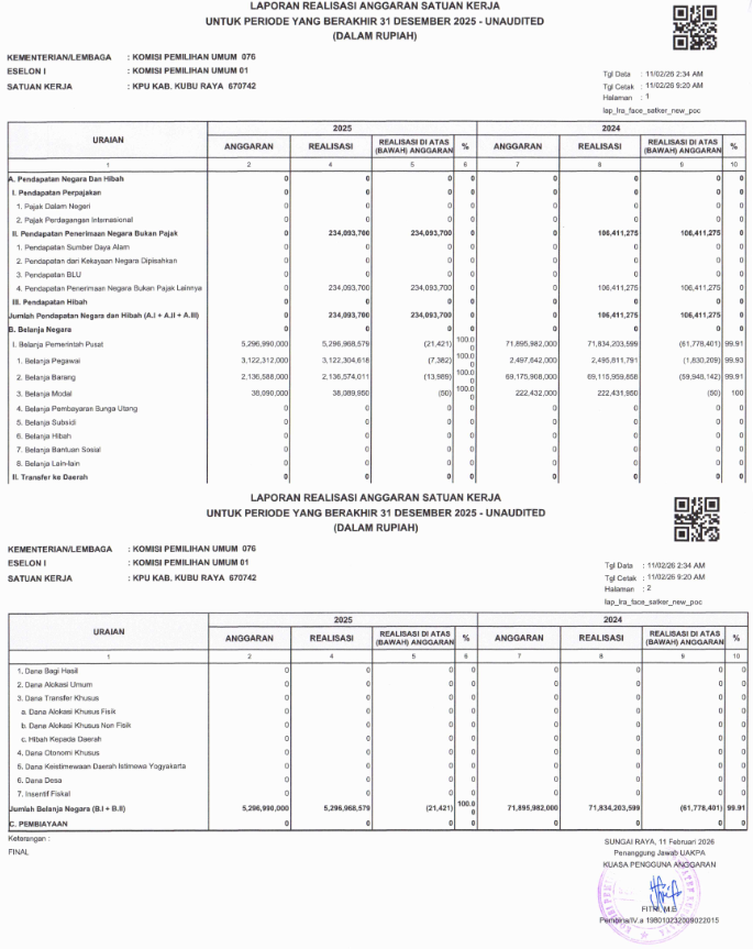 - LAPORAN REALISASI ANGGARAN (LRA) TAHUN 2025
